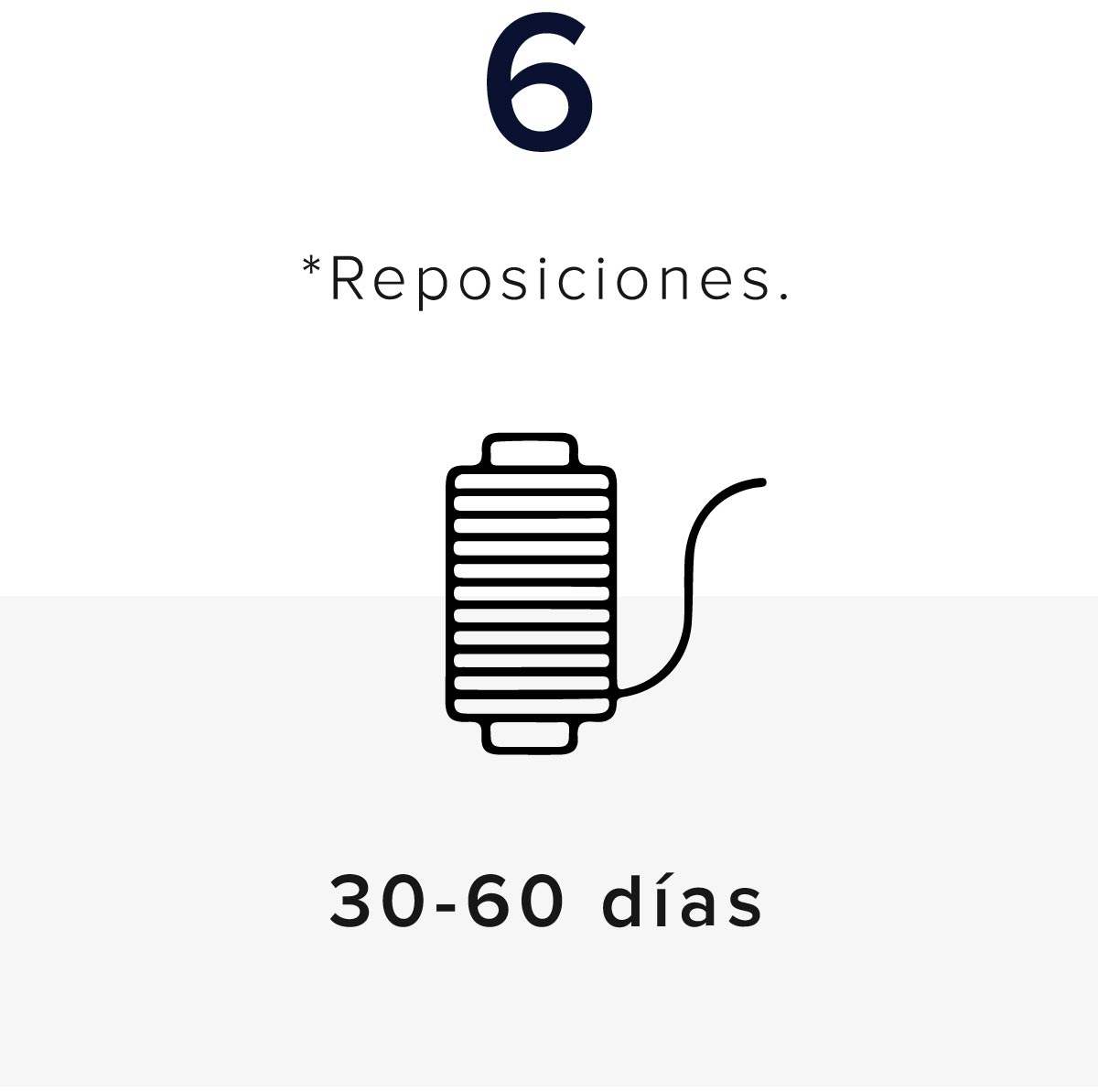*Reposiciones 30 días si tenemos el material, 60 días si debemos pedirlo.
