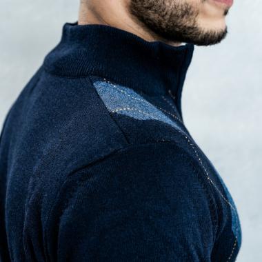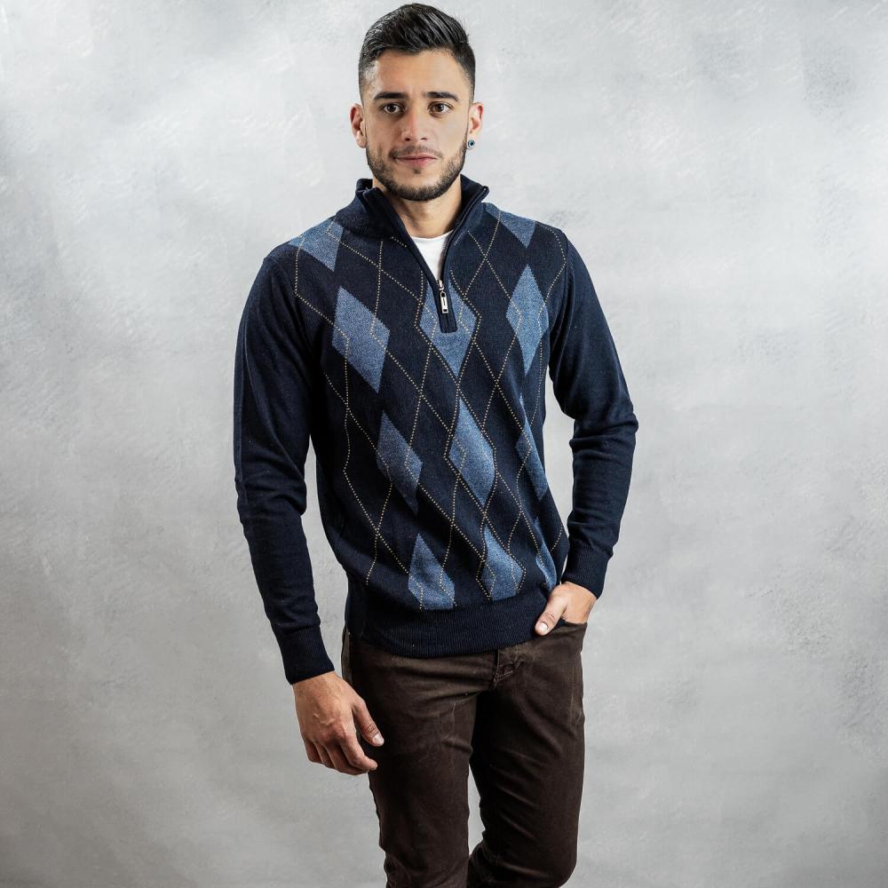 Sweater cuello V para hombre en tejido Jersey con Cogotera en jacquard. Hecho por manos colombianas con amor.