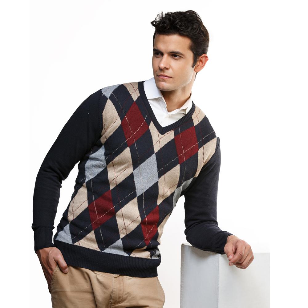 Sweater cuello V para hombre en tejido Jersey con Cogotera en jacquard. Hecho por manos colombianas con amor.