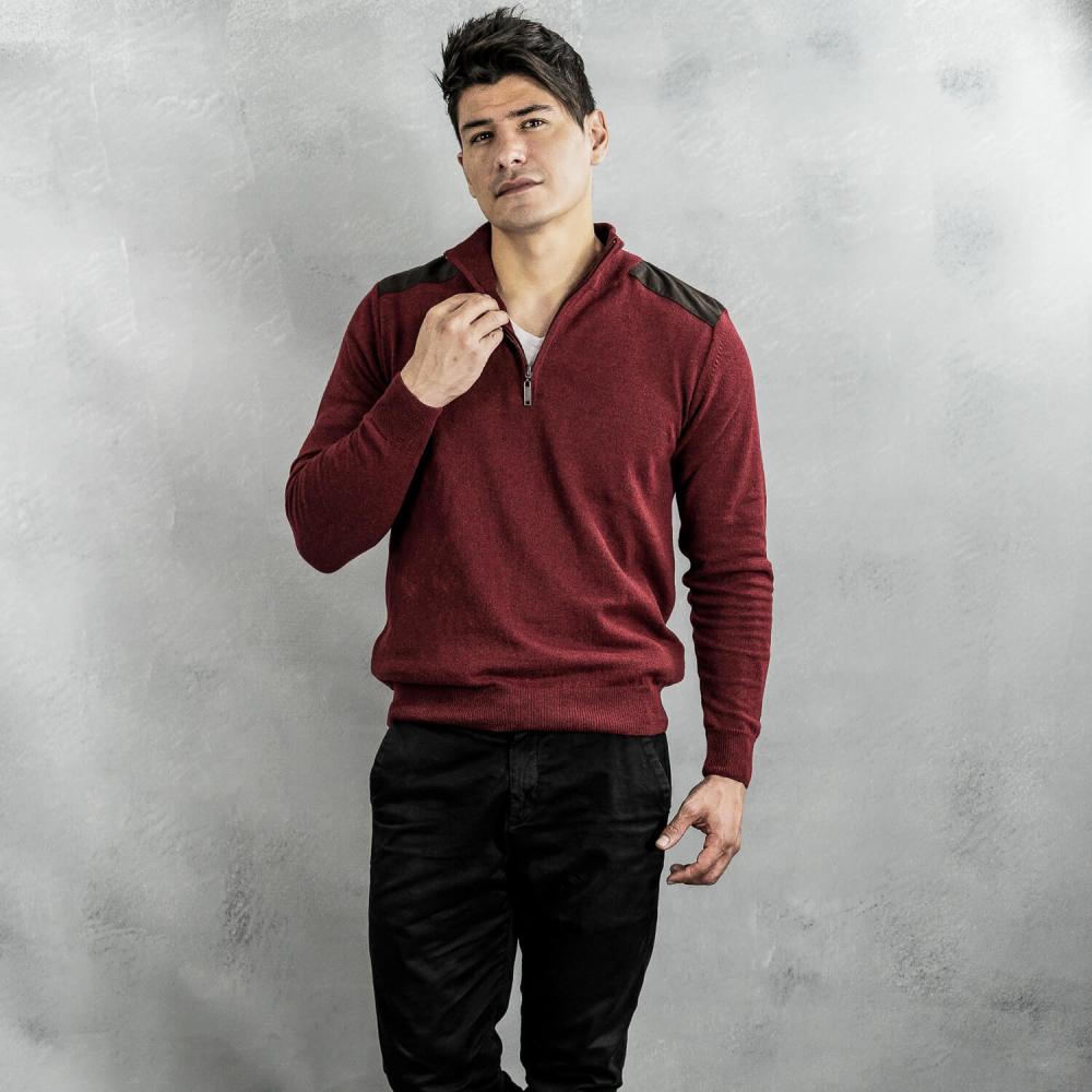 Sweater cuello V para hombre en tejido Jersey con Cogotera en jacquard. Hecho por manos colombianas con amor.